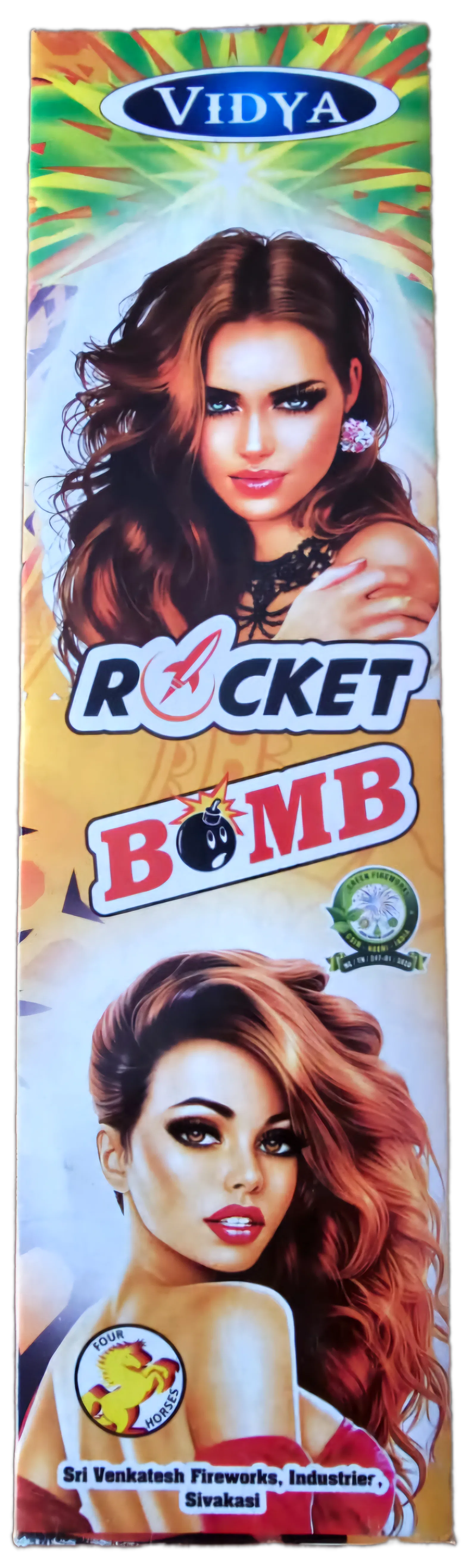 Launch your celebrations sky-high with Rocket Bomb Crackers from Crackers Corner! This box of 10 pieces delivers an exhilarating vertical ascent culminating in a powerful 'bomb' explosion high in the night sky. Perfect for dazzling nighttime displays, these fancy rockets combine thrilling visual flight with a loud, impactful bang. Get your premium Sivakasi rockets for an unforgettable festive experience!