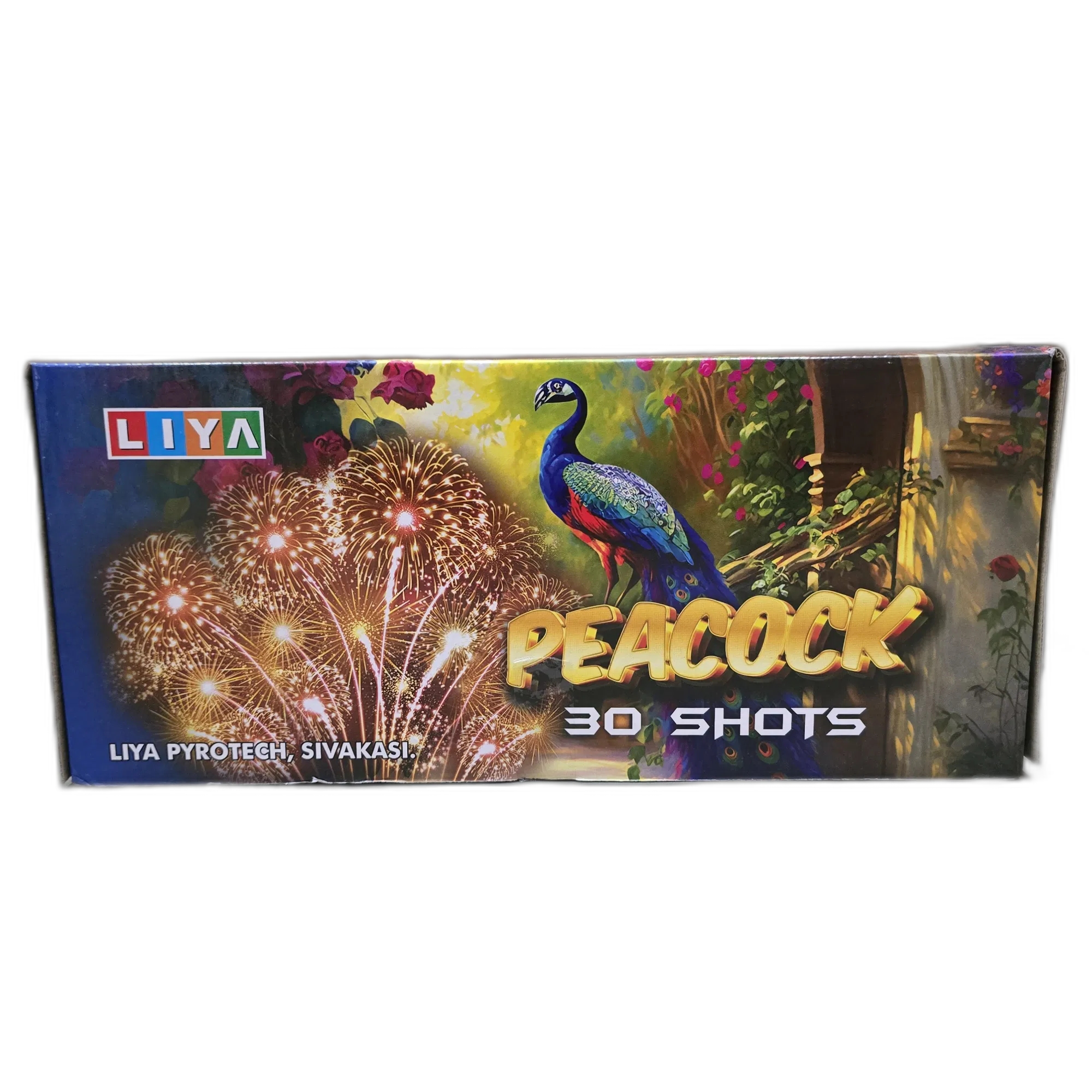 Transform your celebrations with 30 sequential multi-color bursts beautifully resembling a dancing peacock's feathers. Perfect for Diwali, weddings, and festive nights.