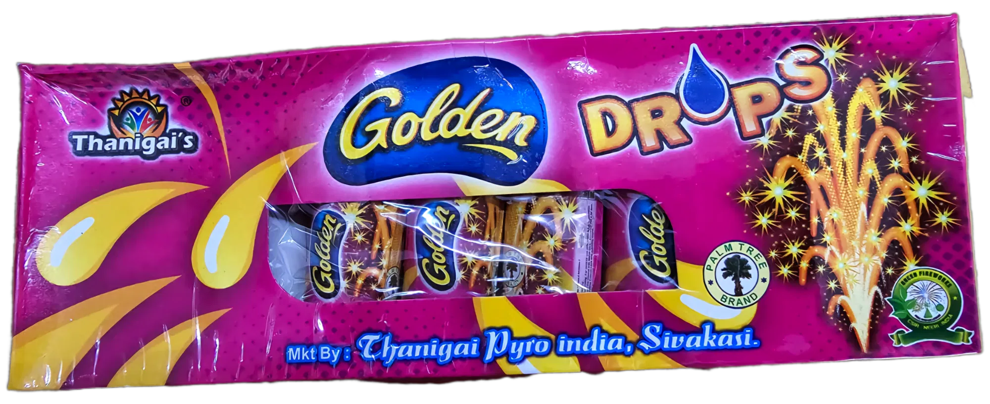 Unleash a shower of brilliance with Golden Drops Crackling Fountain Crackers from Crackers Corner! Each box contains 5 pieces, creating mesmerizing 'golden rain' effects with delightful crackling sounds. Safe for ages 14+ with adult supervision. Shop today!
