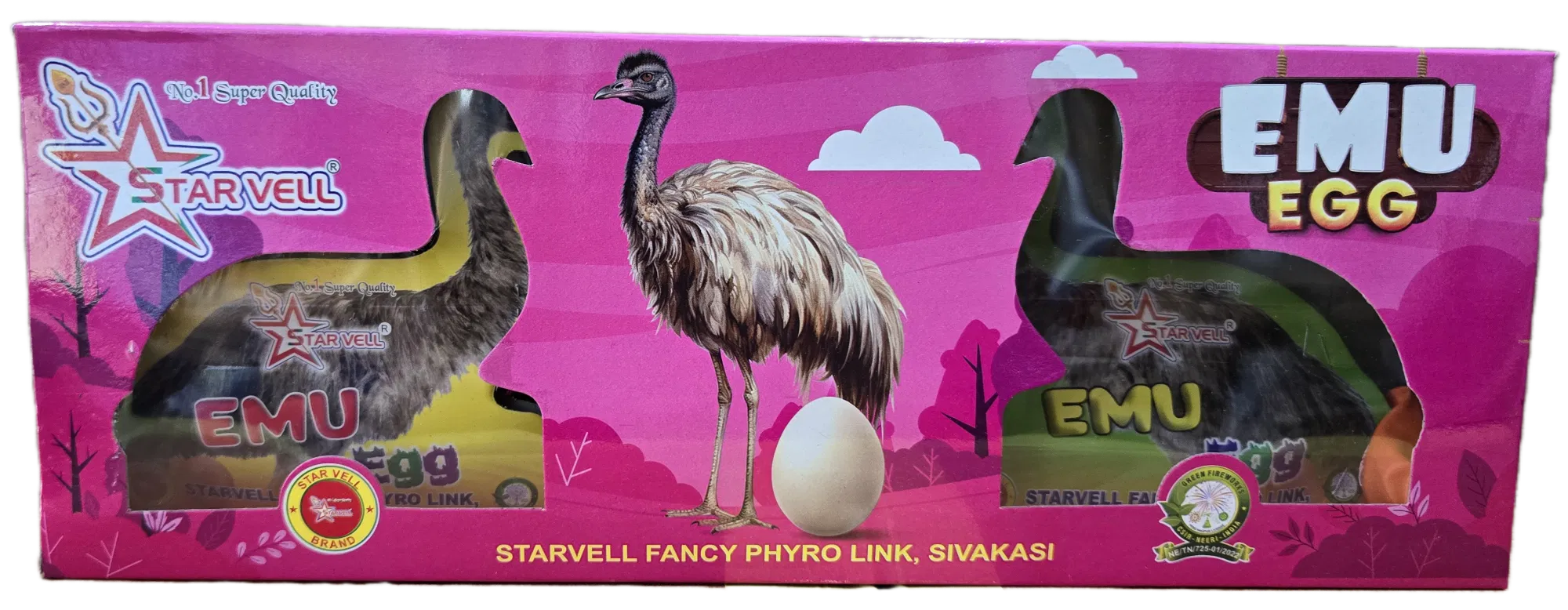 Our Emu Egg Fancy Crackers are proudly sourced from Sivakasi, India, guaranteeing the superior quality and safety you expect from premium fireworks. Add a unique burst of wonder to your next celebration with this exciting dual-action cracker!