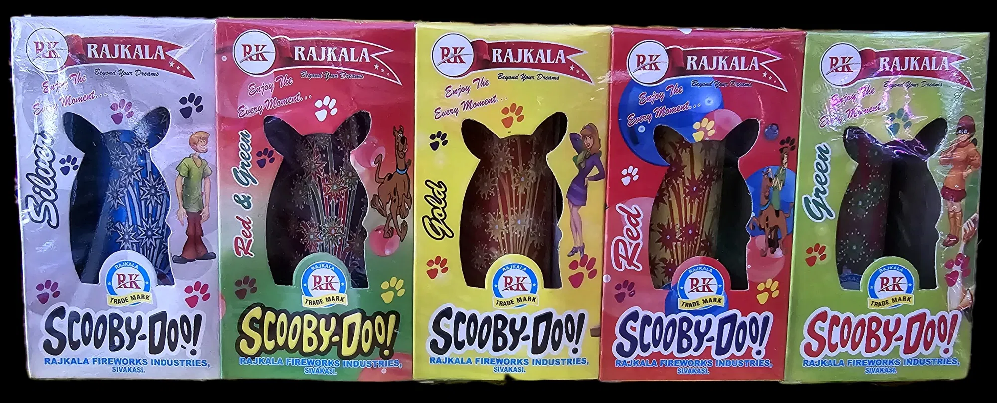 ಈ ಪಟಾಕಿಗಳು ಪ್ರೀತಿಯ ಸ್ಕೂಬಿ ಡೂ ಗ್ಯಾಂಗ್ಗೆ ಗೌರವಾರ್ಥವಾಗಿವೆ, ಇದು ಯಾವುದೇ ಪಾರ್ಟಿ, ಹುಟ್ಟುಹಬ್ಬ ಅಥವಾ ಥೀಮ್ ಕಾರ್ಯಕ್ರಮಕ್ಕೆ ಅನಿಮೇಟೆಡ್ ವಿನೋದವನ್ನು ಸೇರಿಸುತ್ತದೆ. ದೃಶ್ಯ ವೈಭವದ ಹೊರತಾಗಿ, ಅವು ವಿಶಿಷ್ಟ ಧ್ವನಿ ಪ್ರೊಫೈಲ್ ಅನ್ನು ಒಳಗೊಂಡಿರುತ್ತವೆ, ಕಡಿಮೆ ಬಿರುಕು ಧ್ವನಿಯೊಂದಿಗೆ ಪ್ರಾರಂಭಿಸಿ ಮತ್ತು ಕಾರಂಜಿ ತನ್ನ ಉತ್ತುಂಗವನ್ನು ತಲುಪಿದಾಗ ಮಧ್ಯಮ ಸೀಟಿಯೊಂದಿಗೆ ಕೊನೆಗೊಳ್ಳುತ್ತದೆ.