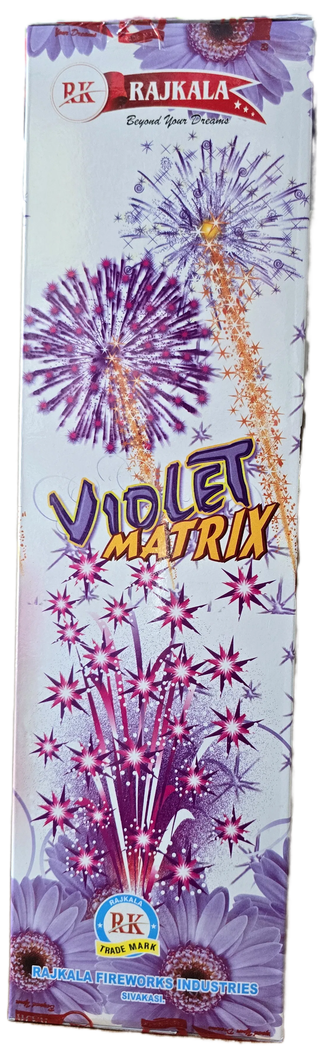 ഞങ്ങളുടെ വയലറ്റ് മാട്രിക്സ് ഷവർ പടക്കങ്ങൾ ശിവകാശി, ഇന്ത്യ യിൽ നിന്ന് അഭിമാനപൂർവ്വം ലഭിക്കുന്നു, ഇത് പ്രീമിയം പടക്കങ്ങളിൽ നിന്ന് നിങ്ങൾ പ്രതീക്ഷിക്കുന്ന മികച്ച ഗുണനിലവാരവും സുരക്ഷയും ഉറപ്പാക്കുന്നു. വയലറ്റിന്റെ അതിശയകരമായ മനോഹാരിതയും അതിശയകരമായ ആകാശ ഫൈനലും ഉപയോഗിച്ച് നിങ്ങളുടെ രാത്രിയെ പ്രകാശിപ്പിക്കട്ടെ!